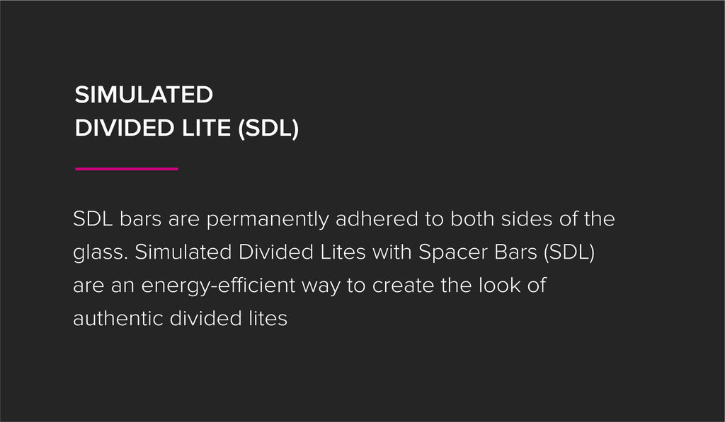 Simulated divided lites, available in a number of different styles, mimic the look of individual panes of glass with the energy efficiency of dual pane insulated glass. Our custom capabilities allow us to create almost any divided lite pattern to match your design style.