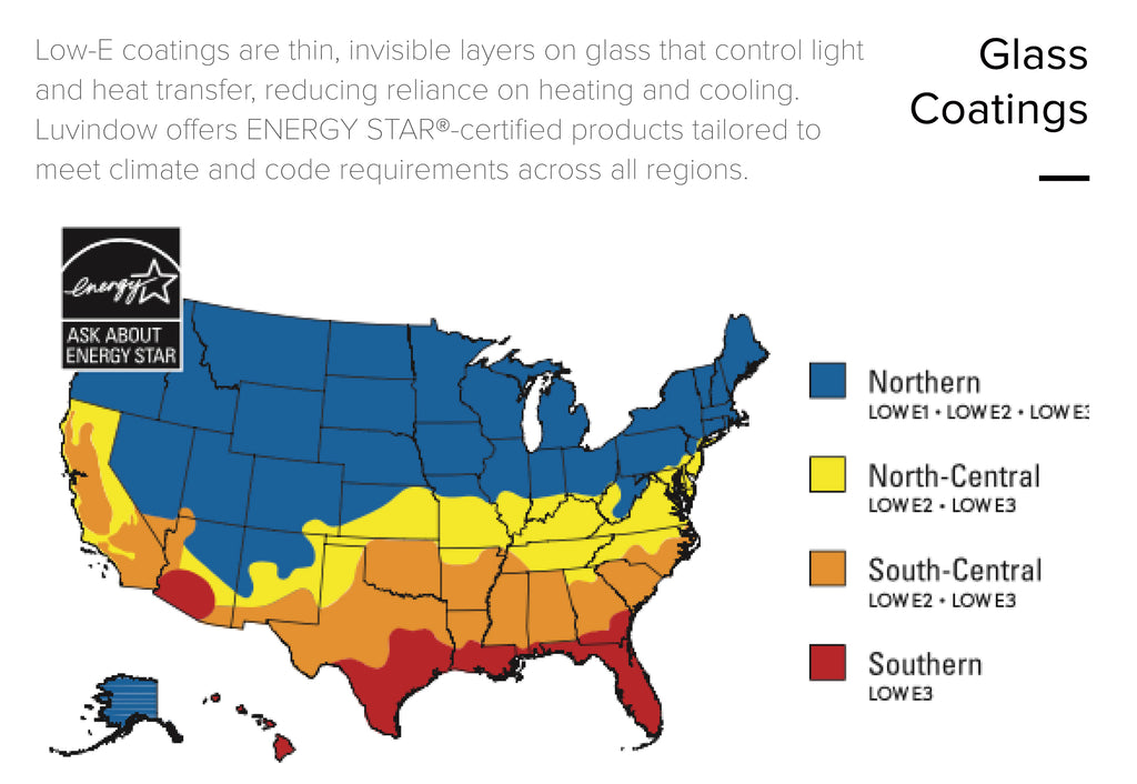 The thermal and structural properties of wood combined with the right glazing make Luvindow wood and extruded aluminum clad products an optimal choice for energy efficiency. We offer dozens of window and door options with two or three panes of glass and a range of glazing options to meet the performance challenges of any climate.