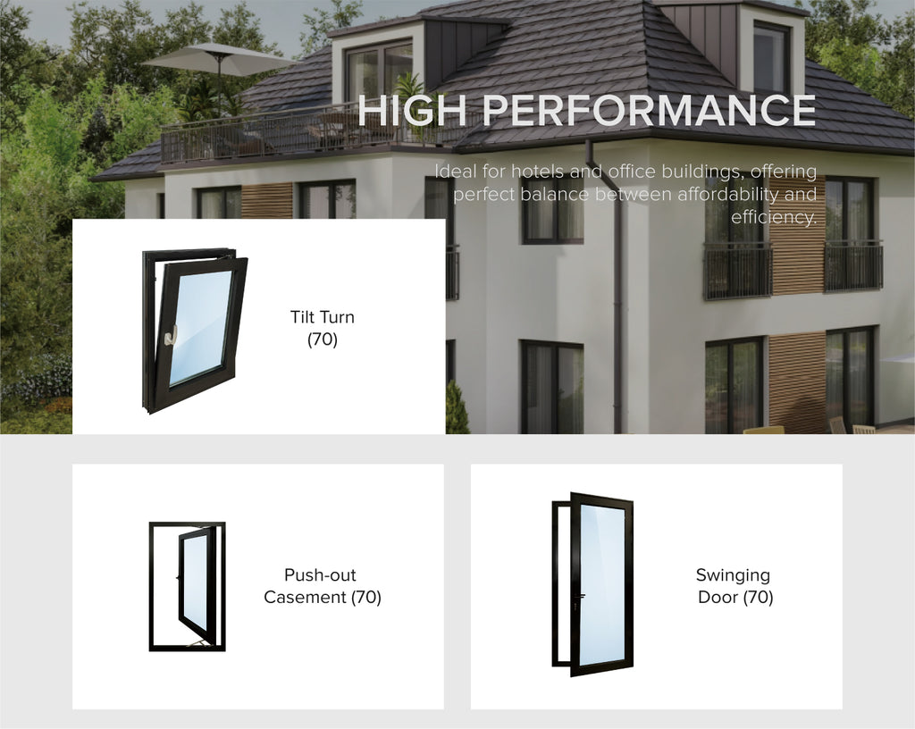 Tilt & turn window is commonly found in europe and gaining popularity worldwide. This innovative window features a dual-action hardware system that allows it to tilt open from the top for ventilation, similar to a hopper window, and swing in from the side like a casement window.