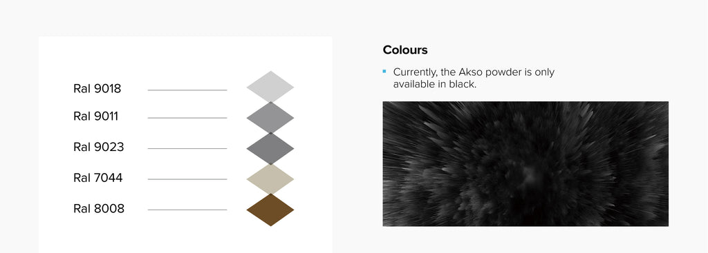 Fluorocarbon coat finishing is available at request for extreme environmental conditions. There are over 200 RAL colours to choose from, a dual colour option giving different colours to the inside and doutside is available as an additional extra.