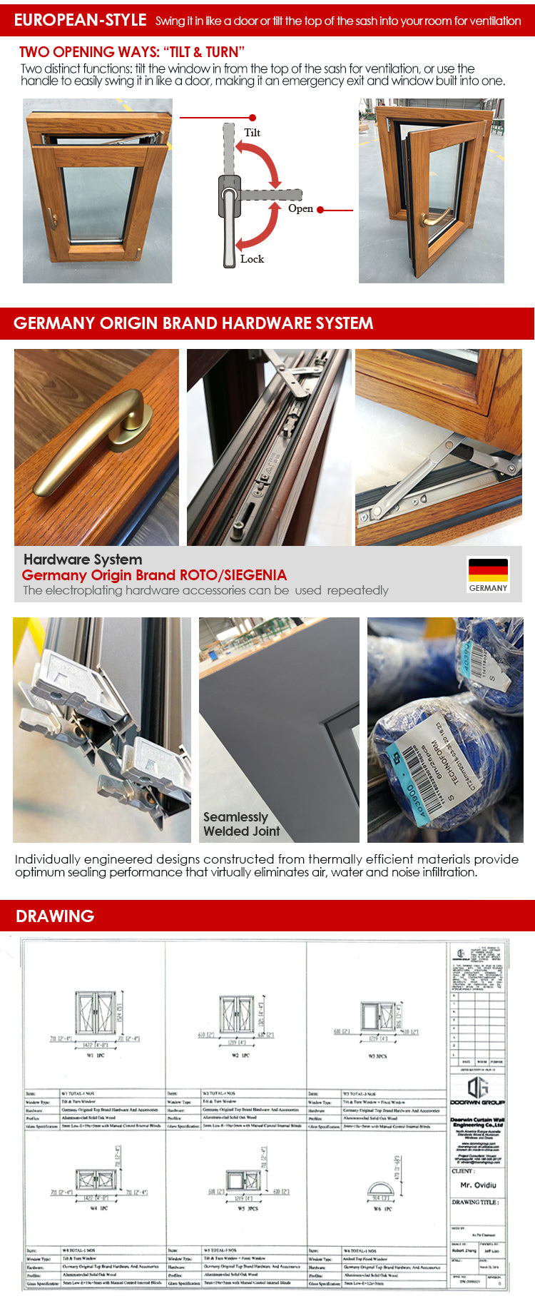 Made in China Latest Design NFRC Inside Open Aluminum Clad Wood 3 Glass Solid Wooden Tilt And Turn Casement Windows Imagination Series