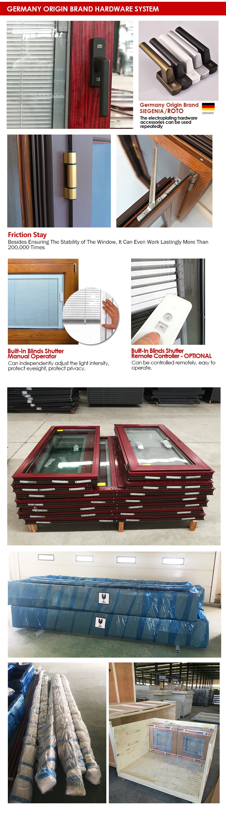 1), Top Quality Thermal Break Aluminum Profiles-Powder Coating Finishing, Interior & Exterior Color TBC(To Be Confirmed) 2), Fully Tempered Safety Double Glazing, 6mm+12Ar+6mm, Advanced Low-E Coating, Argon Gas Filled 3), Top Quality German Origin Made Brand Hardware Accessories-SIEGENIA/ ROTO 4), Option1: Fixed Removable Mosquito Nets(Fly Screens). Option2: Retractable Fly Screens(Rolling Up-Down Fly Screen). Option3: Stainless Steel Anti-Theft Mosquito Nets |