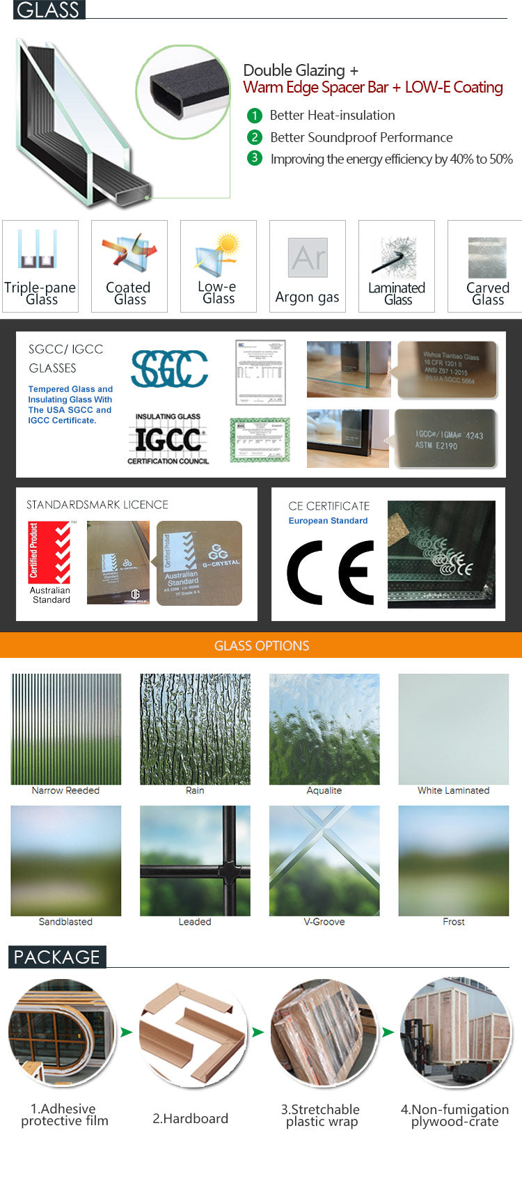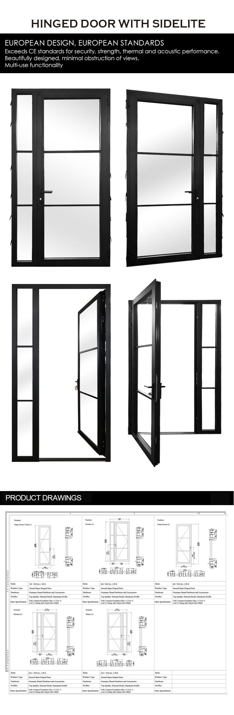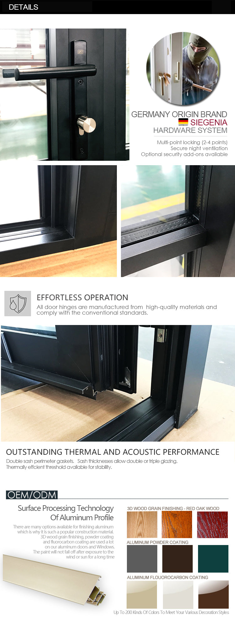 1), Top Quality Thermal Break Aluminum Profiles-Powder Coating Finishing, Interior & Exterior Color TBC(To Be Confirmed) 2), Fully Tempered Safety Double Glazing, 6mm+12Ar+6mm, Advanced Low-E Coating, Argon Gas Filled 3), Top Quality German Origin Made Brand Hardware Accessories-SIEGENIA/ ROTO 4), Option1: Fixed Removable Mosquito Nets(Fly Screens). Option2: Retractable Fly Screens(Rolling Up-Down Fly Screen). Option3: Stainless Steel Anti-Theft Mosquito Nets |
