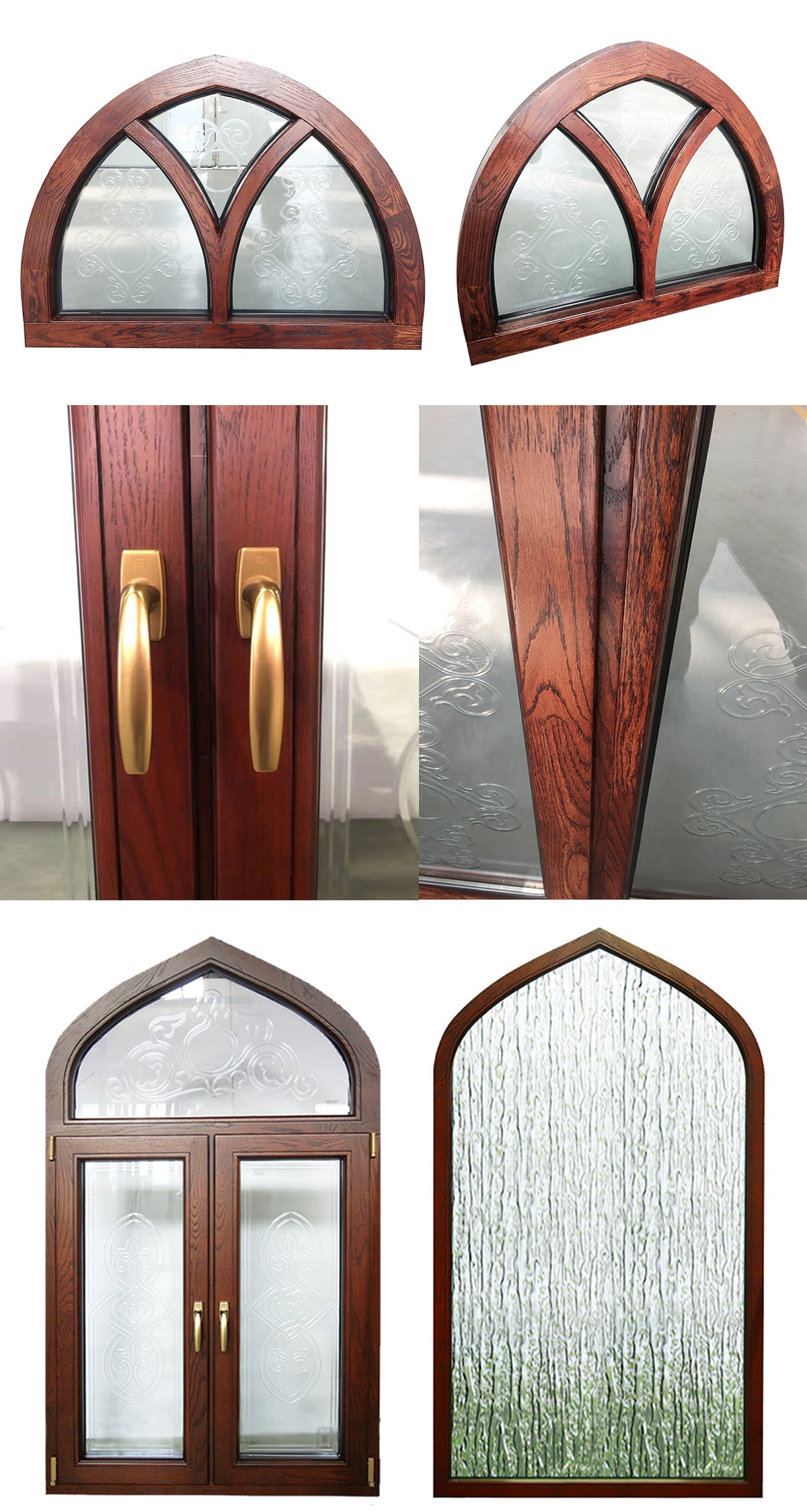 USA Baltimore hot sale Fantastic Arched Oak Wood Aluminium half round windows with carved glass