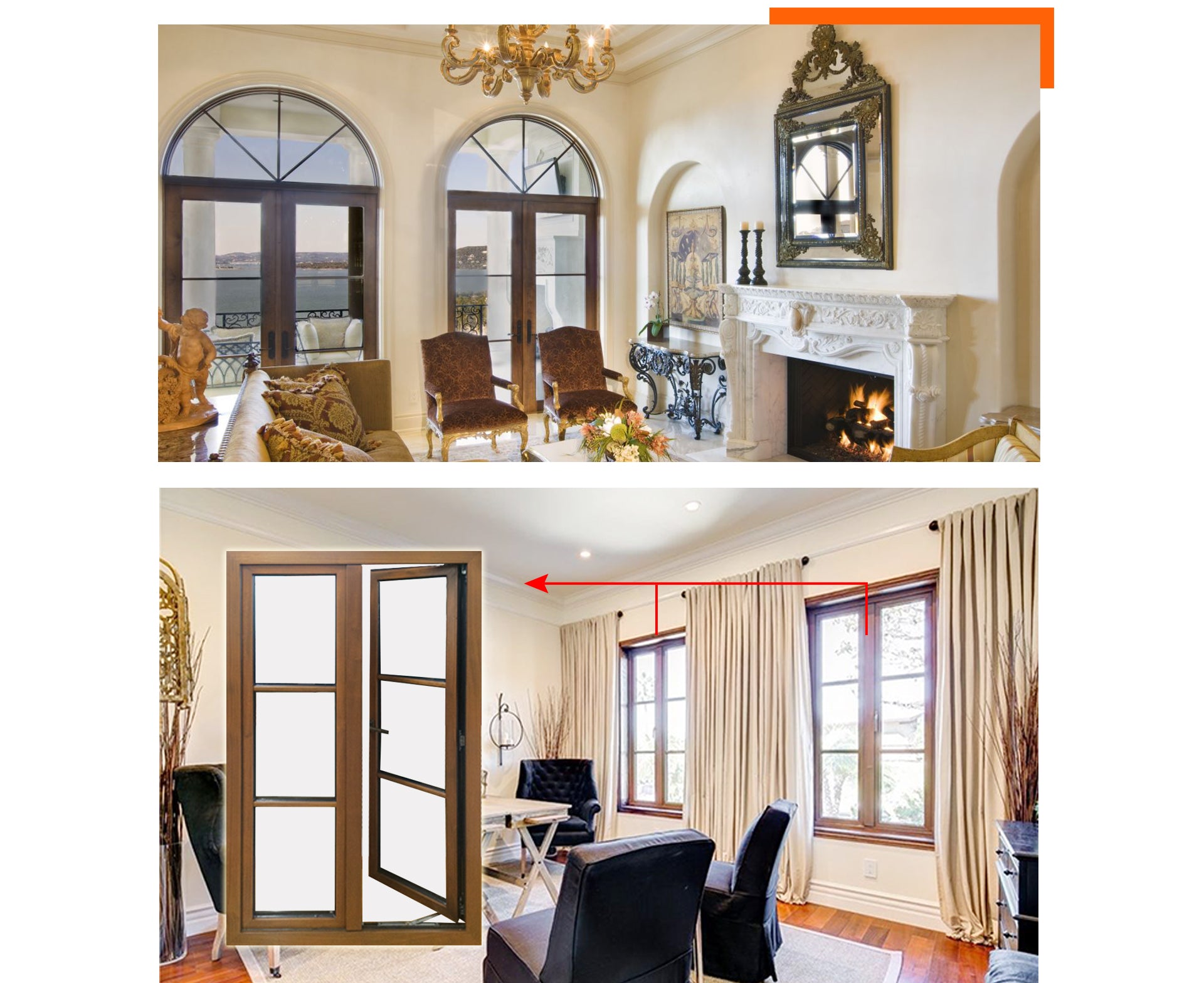 After we go through the plan drawing with clients, we decide to recommend him the teak clad thermal break aluminum windows with tilt turn opening, based on the clients’ preference and our design experience. Tilt turn window is popular window type in Europe, it’s not common in America. Tilt turn window features dual functions by the orientation of the handle. When it turns 90 degrees, it’s a casement. When it turns 180 degrees, it’s a top opening hopper. Tilt turn window combines the advantages of casement and hopper. We strongly recommend it our clients.