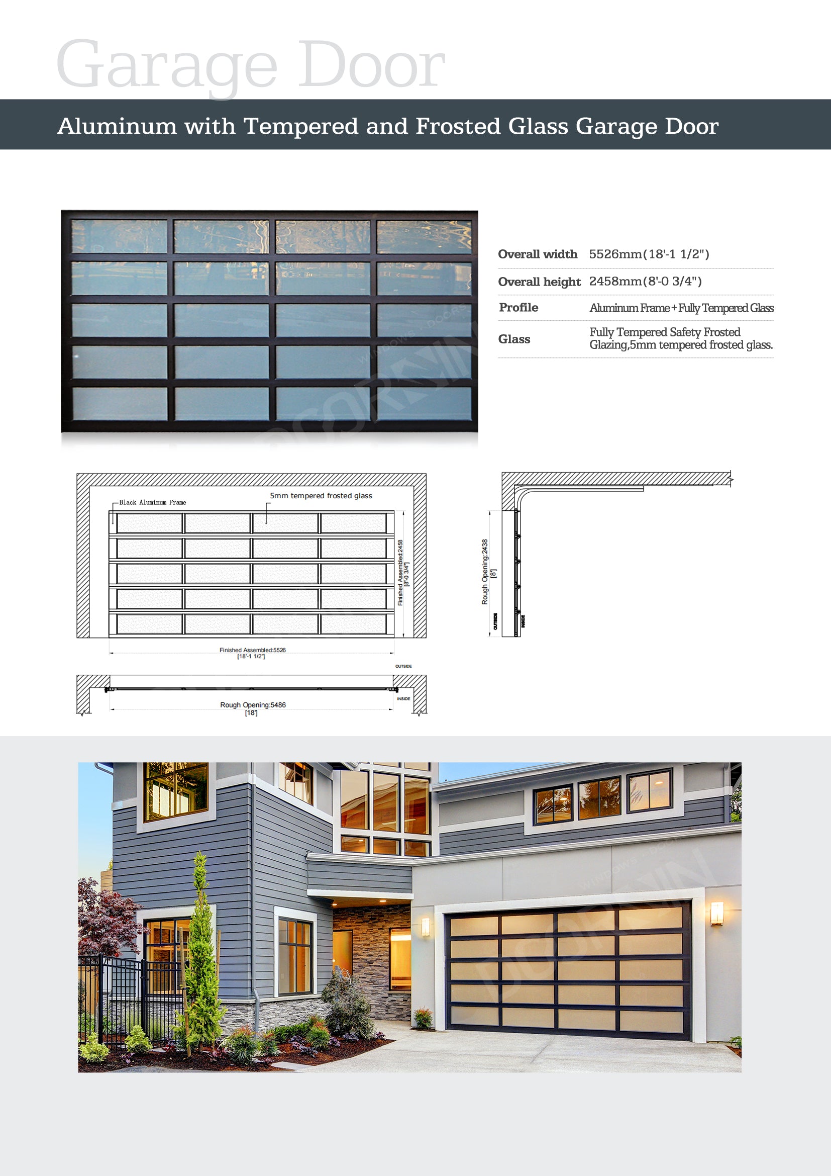 Grille Glass Aluminum Garage Door